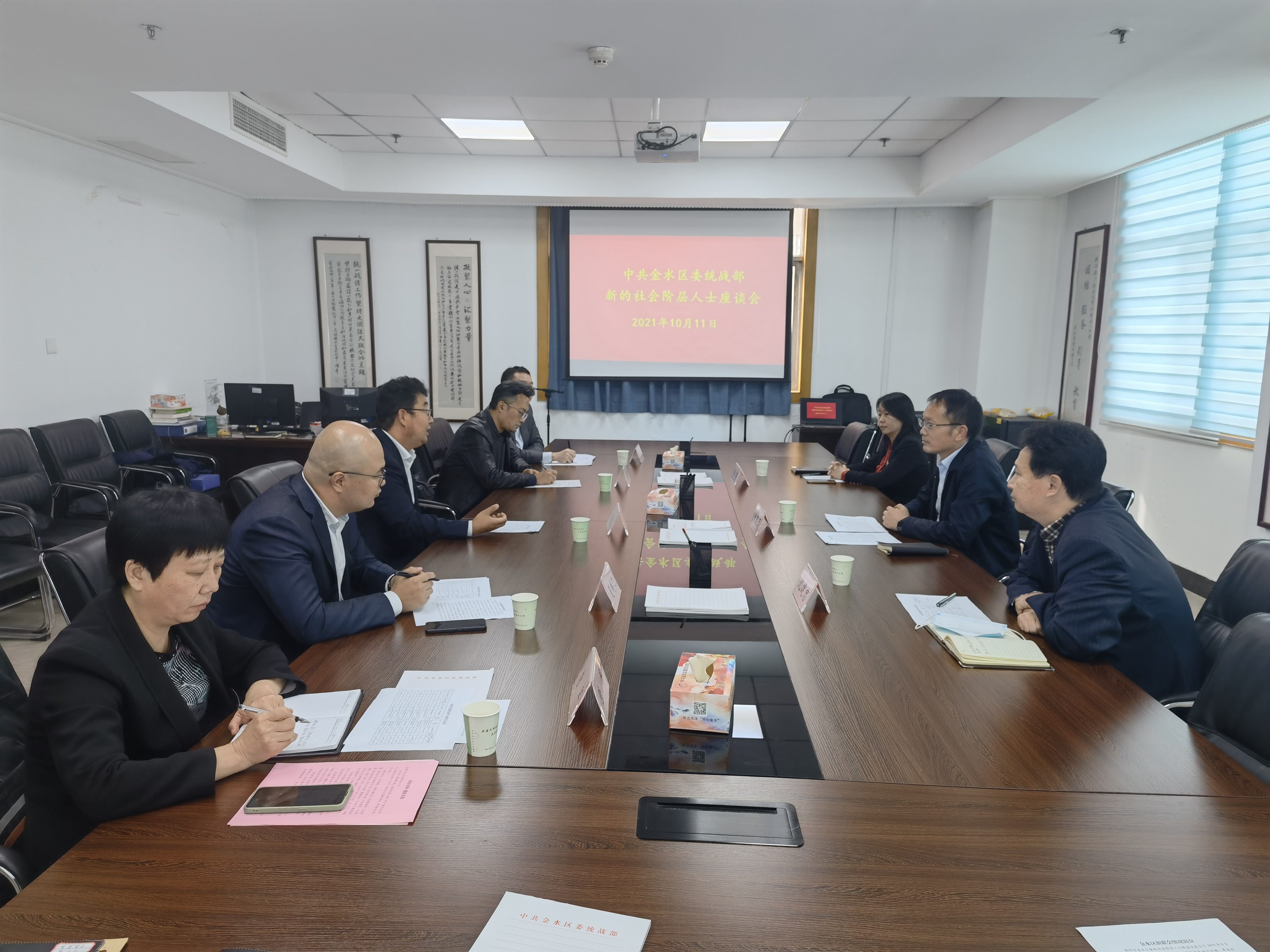 10月11日,金水区委统战部在机关512会议室召开新的社会阶层人士座谈会,区委常委、统战部部长、区委办主任黄国彦,区委统战部常务副部长沈建忠,副部长李莉出席会议,区新联会会长张晓亮、副会长王占伟、唐军、段学...