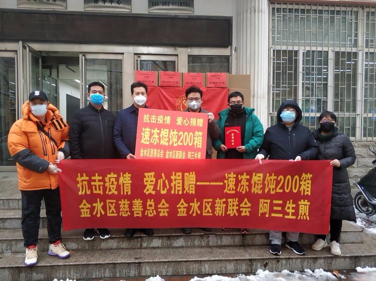 2月6日,金水区新联会会员郭晓冬所在企业河南萌晟餐饮管理有限公司(阿三生煎)向金水区慈善总会定向捐赠速冻馄饨200箱,助力金水区疫情防控工作。