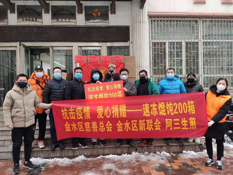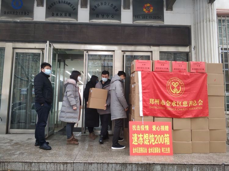 2月6日,金水区新联会会员郭晓冬所在企业河南萌晟餐饮管理有限公司(阿三生煎)向金水区慈善总会定向捐赠速冻馄饨200箱,助力金水区疫情防控工作。